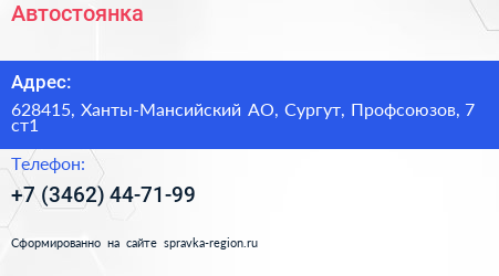 Автостоянка по адресу 628415, Ханты-Мансийский АО, Сургут, Профсоюзов, 7 ст1 в дальнейшем Организация, размещена в следующих категориях: