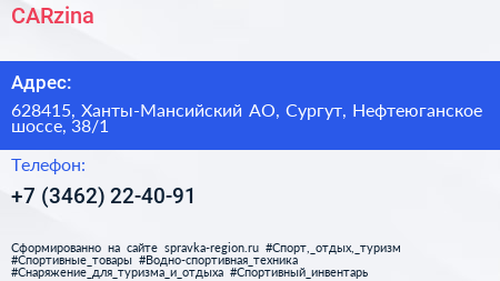 CARzina по адресу 628415, Ханты-Мансийский АО, Сургут, Нефтеюганское шоссе, 38/1 в дальнейшем Организация, размещена в следующих категориях: