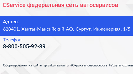 EService, федеральная сеть автосервисов по адресу 628401, Ханты-Мансийский АО, Сургут, Инженерная, 1/5 в дальнейшем Организация, размещена в следующих категориях: