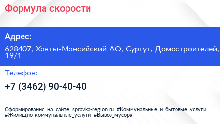 Формула скорости по адресу 628407, Ханты-Мансийский АО, Сургут, Домостроителей, 19/1 в дальнейшем Организация, размещена в следующих категориях: