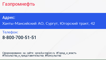 Газпромнефть по адресу Ханты-Мансийский АО, Сургут, Югорский тракт, 42 в дальнейшем Организация, размещена в следующих категориях: