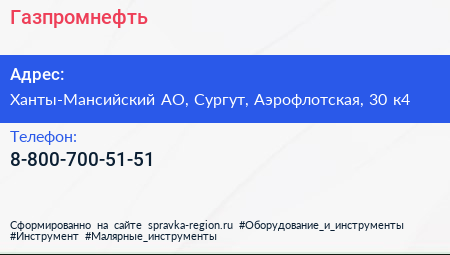 Газпромнефть по адресу Ханты-Мансийский АО, Сургут, Аэрофлотская, 30 к4 в дальнейшем Организация, размещена в следующих категориях: