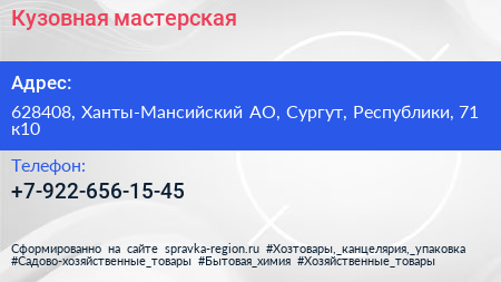 Кузовная мастерская по адресу 628408, Ханты-Мансийский АО, Сургут, Республики, 71 к10 в дальнейшем Организация, размещена в следующих категориях: