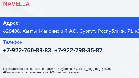 NAVELLA по адресу 628408, Ханты-Мансийский АО, Сургут, Республики, 71 к5 в дальнейшем Организация, размещена в следующих категориях: