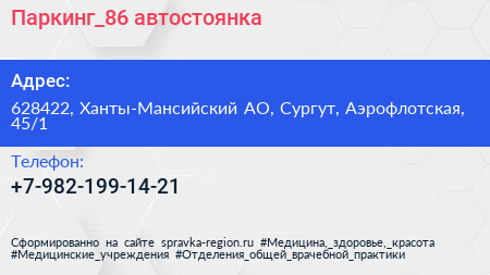 Паркинг_86, автостоянка по адресу 628422, Ханты-Мансийский АО, Сургут, Аэрофлотская, 45/1 в дальнейшем Организация, размещена в следующих категориях: