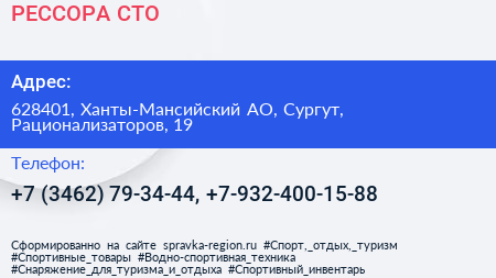 РЕССОРА, СТО по адресу 628401, Ханты-Мансийский АО, Сургут, Рационализаторов, 19 в дальнейшем Организация, размещена в следующих категориях: