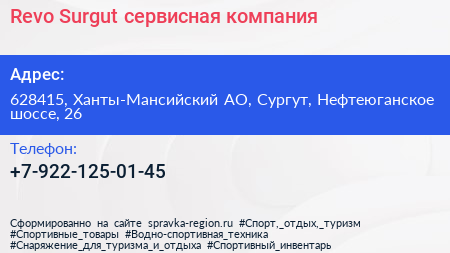 Revo Surgut, сервисная компания по адресу 628415, Ханты-Мансийский АО, Сургут, Нефтеюганское шоссе, 26 в дальнейшем Организация, размещена в следующих категориях: