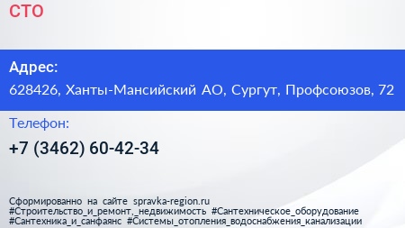 СТО по адресу 628426, Ханты-Мансийский АО, Сургут, Профсоюзов, 72 в дальнейшем Организация, размещена в следующих категориях: