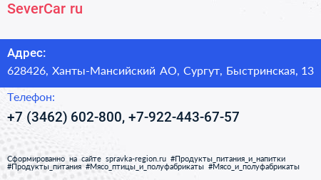 SeverCar.ru по адресу 628426, Ханты-Мансийский АО, Сургут, Быстринская, 13 в дальнейшем Организация, размещена в следующих категориях: