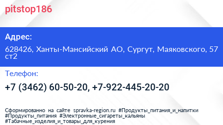 pitstop186 по адресу 628426, Ханты-Мансийский АО, Сургут, Маяковского, 57 ст2 в дальнейшем Организация, размещена в следующих категориях: