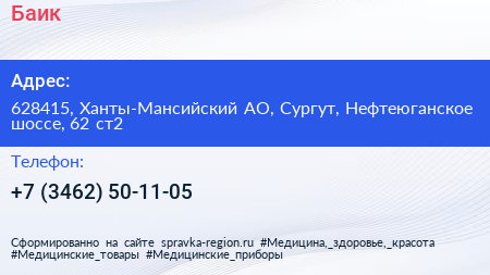 Баик по адресу 628415, Ханты-Мансийский АО, Сургут, Нефтеюганское шоссе, 62 ст2 в дальнейшем Организация, размещена в следующих категориях: