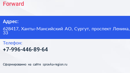Forward по адресу 628417, Ханты-Мансийский АО, Сургут, проспект Ленина, 33 в дальнейшем Организация, размещена в следующих категориях: