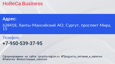 HoReCa Business по адресу 628418, Ханты-Мансийский АО, Сургут, проспект Мира, 15 в дальнейшем Организация, размещена в следующих категориях: