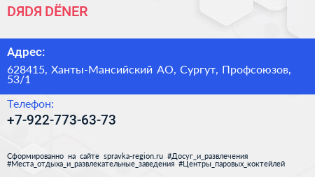 DЯDЯ DЁNER по адресу 628415, Ханты-Мансийский АО, Сургут, Профсоюзов, 53/1 в дальнейшем Организация, размещена в следующих категориях: