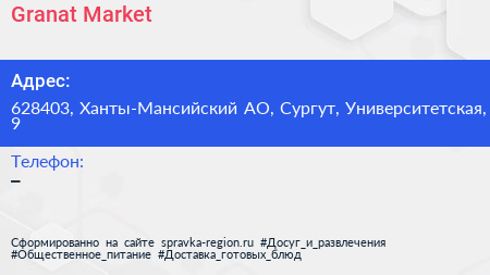 Granat Market по адресу 628403, Ханты-Мансийский АО, Сургут, Университетская, 9 в дальнейшем Организация, размещена в следующих категориях: