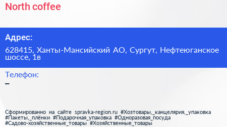 North coffee по адресу 628415, Ханты-Мансийский АО, Сургут, Нефтеюганское шоссе, 1в в дальнейшем Организация, размещена в следующих категориях: