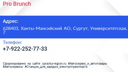 Pro Brunch по адресу 628403, Ханты-Мансийский АО, Сургут, Университетская, 7 в дальнейшем Организация, размещена в следующих категориях: