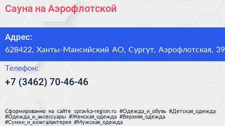 Сауна на Аэрофлотской по адресу 628422, Ханты-Мансийский АО, Сургут, Аэрофлотская, 39 в дальнейшем Организация, размещена в следующих категориях: