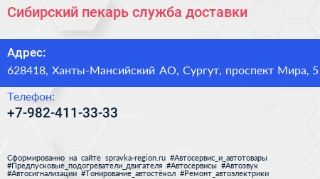 Сибирский пекарь, служба доставки по адресу 628418, Ханты-Мансийский АО, Сургут, проспект Мира, 5 в дальнейшем Организация, размещена в следующих категориях: