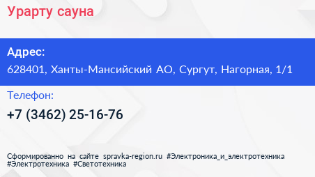 Урарту, сауна по адресу 628401, Ханты-Мансийский АО, Сургут, Нагорная, 1/1 в дальнейшем Организация, размещена в следующих категориях: