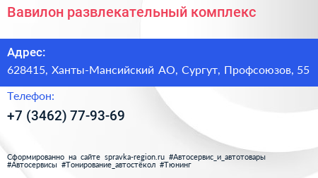 Вавилон, развлекательный комплекс по адресу 628415, Ханты-Мансийский АО, Сургут, Профсоюзов, 55 в дальнейшем Организация, размещена в следующих категориях: