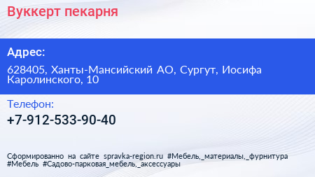 Вуккерт, пекарня по адресу 628405, Ханты-Мансийский АО, Сургут, Иосифа Каролинского, 10 в дальнейшем Организация, размещена в следующих категориях: