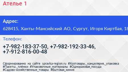 Ателье №1 по адресу 628415, Ханты-Мансийский АО, Сургут, Игоря Киртбая, 18 в дальнейшем Организация, размещена в следующих категориях: