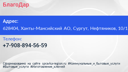 БлагоДар по адресу 628404, Ханты-Мансийский АО, Сургут, Нефтяников, 10/1 в дальнейшем Организация, размещена в следующих категориях: