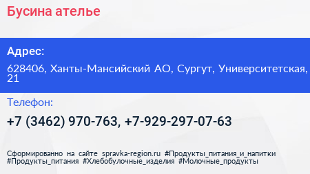Бусина, ателье по адресу 628406, Ханты-Мансийский АО, Сургут, Университетская, 21 в дальнейшем Организация, размещена в следующих категориях: