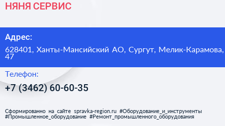 НЯНЯ СЕРВИС по адресу 628401, Ханты-Мансийский АО, Сургут, Мелик-Карамова, 47 в дальнейшем Организация, размещена в следующих категориях: