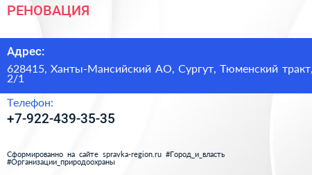РЕНОВАЦИЯ по адресу 628415, Ханты-Мансийский АО, Сургут, Тюменский тракт, 2/1 в дальнейшем Организация, размещена в следующих категориях: