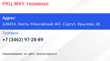 РКЦ ЖКУ, терминал по адресу 628414, Ханты-Мансийский АО, Сургут, Крылова, 26 в дальнейшем Организация, размещена в следующих категориях: