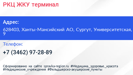 РКЦ ЖКУ, терминал по адресу 628403, Ханты-Мансийский АО, Сургут, Университетская, 9 в дальнейшем Организация, размещена в следующих категориях:
