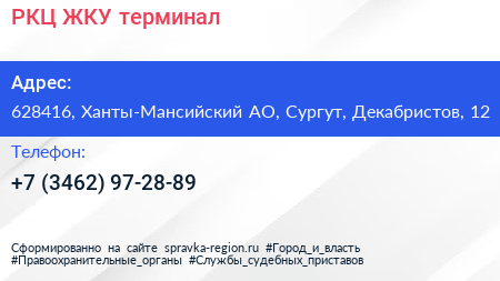 РКЦ ЖКУ, терминал по адресу 628416, Ханты-Мансийский АО, Сургут, Декабристов, 12 в дальнейшем Организация, размещена в следующих категориях: