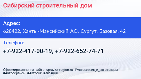 Сибирский строительный дом по адресу 628422, Ханты-Мансийский АО, Сургут, Базовая, 42 в дальнейшем Организация, размещена в следующих категориях: