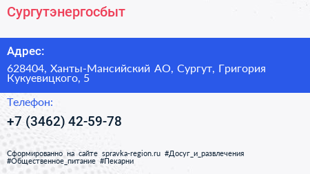 Сургутэнергосбыт по адресу 628404, Ханты-Мансийский АО, Сургут, Григория Кукуевицкого, 5 в дальнейшем Организация, размещена в следующих категориях: