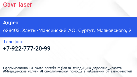 Gavr_laser по адресу 628403, Ханты-Мансийский АО, Сургут, Маяковского, 9 в дальнейшем Организация, размещена в следующих категориях: