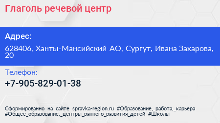 Глаголь, речевой центр по адресу 628406, Ханты-Мансийский АО, Сургут, Ивана Захарова, 20 в дальнейшем Организация, размещена в следующих категориях: