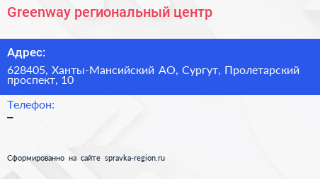 Greenway, региональный центр по адресу 628405, Ханты-Мансийский АО, Сургут, Пролетарский проспект, 10 в дальнейшем Организация, размещена в следующих категориях: