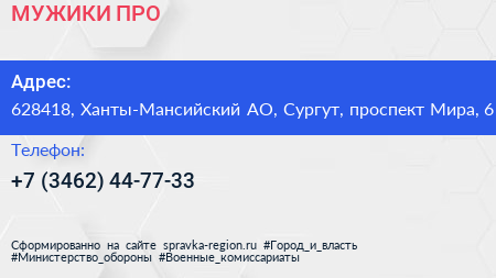 МУЖИКИ ПРО по адресу 628418, Ханты-Мансийский АО, Сургут, проспект Мира, 6 в дальнейшем Организация, размещена в следующих категориях: