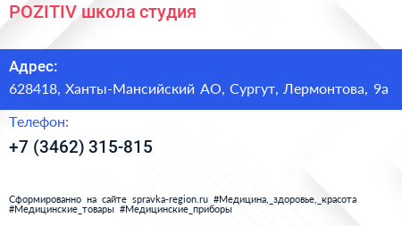 POZITIV, школа-студия по адресу 628418, Ханты-Мансийский АО, Сургут, Лермонтова, 9а в дальнейшем Организация, размещена в следующих категориях: