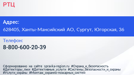 РТЦ по адресу 628405, Ханты-Мансийский АО, Сургут, Югорская, 36 в дальнейшем Организация, размещена в следующих категориях: