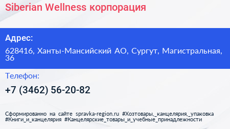 Siberian Wellness, корпорация по адресу 628416, Ханты-Мансийский АО, Сургут, Магистральная, 36 в дальнейшем Организация, размещена в следующих категориях: