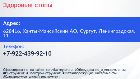 Здоровые стопы по адресу 628416, Ханты-Мансийский АО, Сургут, Ленинградская, 11 в дальнейшем Организация, размещена в следующих категориях: