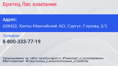 Братец Лис, компания по адресу 628422, Ханты-Мансийский АО, Сургут, Глухова, 2/1 в дальнейшем Организация, размещена в следующих категориях: