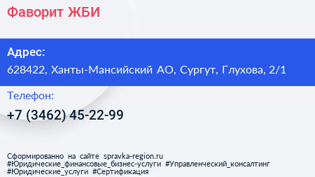 Фаворит ЖБИ по адресу 628422, Ханты-Мансийский АО, Сургут, Глухова, 2/1 в дальнейшем Организация, размещена в следующих категориях:
