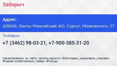 Заборыч по адресу 628426, Ханты-Мансийский АО, Сургут, Маяковского, 57 в дальнейшем Организация, размещена в следующих категориях: