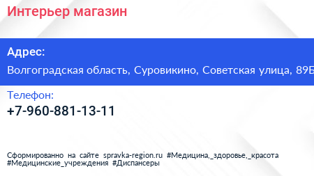 Интерьер, магазин по адресу Волгоградская область, Суровикино, Советская улица, 89Б в дальнейшем Организация, размещена в следующих категориях: