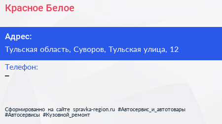 Красное & Белое по адресу Тульская область, Суворов, Тульская улица, 12 в дальнейшем Организация, размещена в следующих категориях: