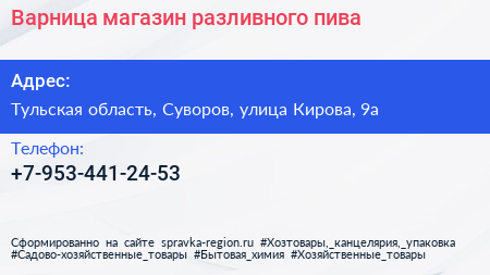 Варница, магазин разливного пива по адресу Тульская область, Суворов, улица Кирова, 9а в дальнейшем Организация, размещена в следующих категориях: